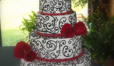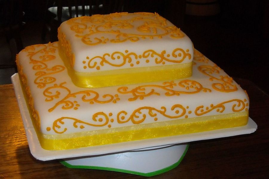 2-Layer white cake with buttercream frosting and mmf. The wedding is at a farm and they're having sunflowers and other yellow flowers. I also did a half sheet cake to match, without the mmf.