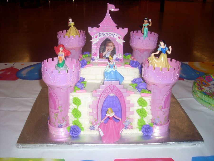Castle Cake for my grandaughter's 4th Birthday. Coconut flavored white cake with buttercream frosting and roses. The castle part was a kit I bought. Fun cake to make