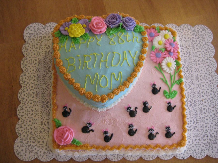 Heart shaped carrot cake - marble bottom layer, whipped center and buttercream icing - royal icing flowers!