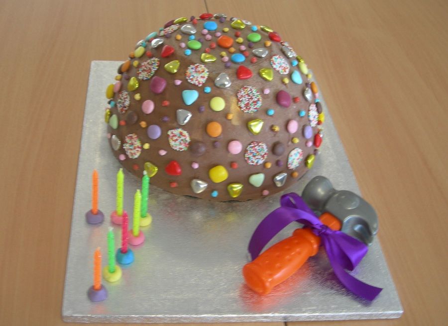 birthday girl had to smash throught the chocolate shell to get to the cake!