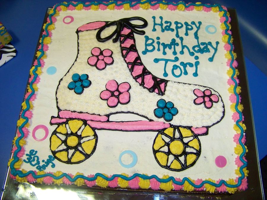 This was actually a double layer 16" square cookie that I decorated to look like a cake. It was for my cousin's party at a skating rink. I think it turned out pretty cute!!