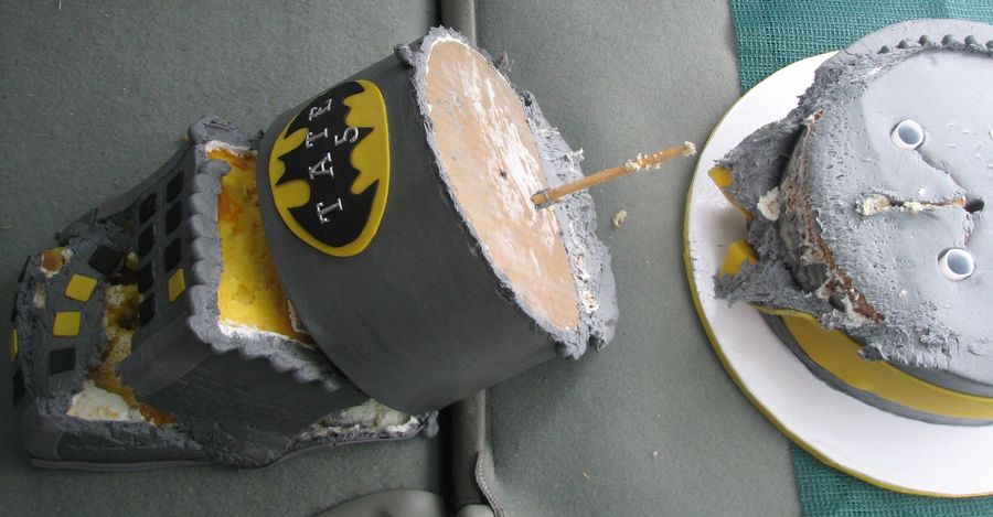 Cake done in buttercream with fondant accents. This cake ended in disaster for me. The top two tiers fell off into the floor of my car while delivering it. I didn't get a picture of it, but the final product would of had batman on top, but ironically I didn't want it to fall of during delivery.
