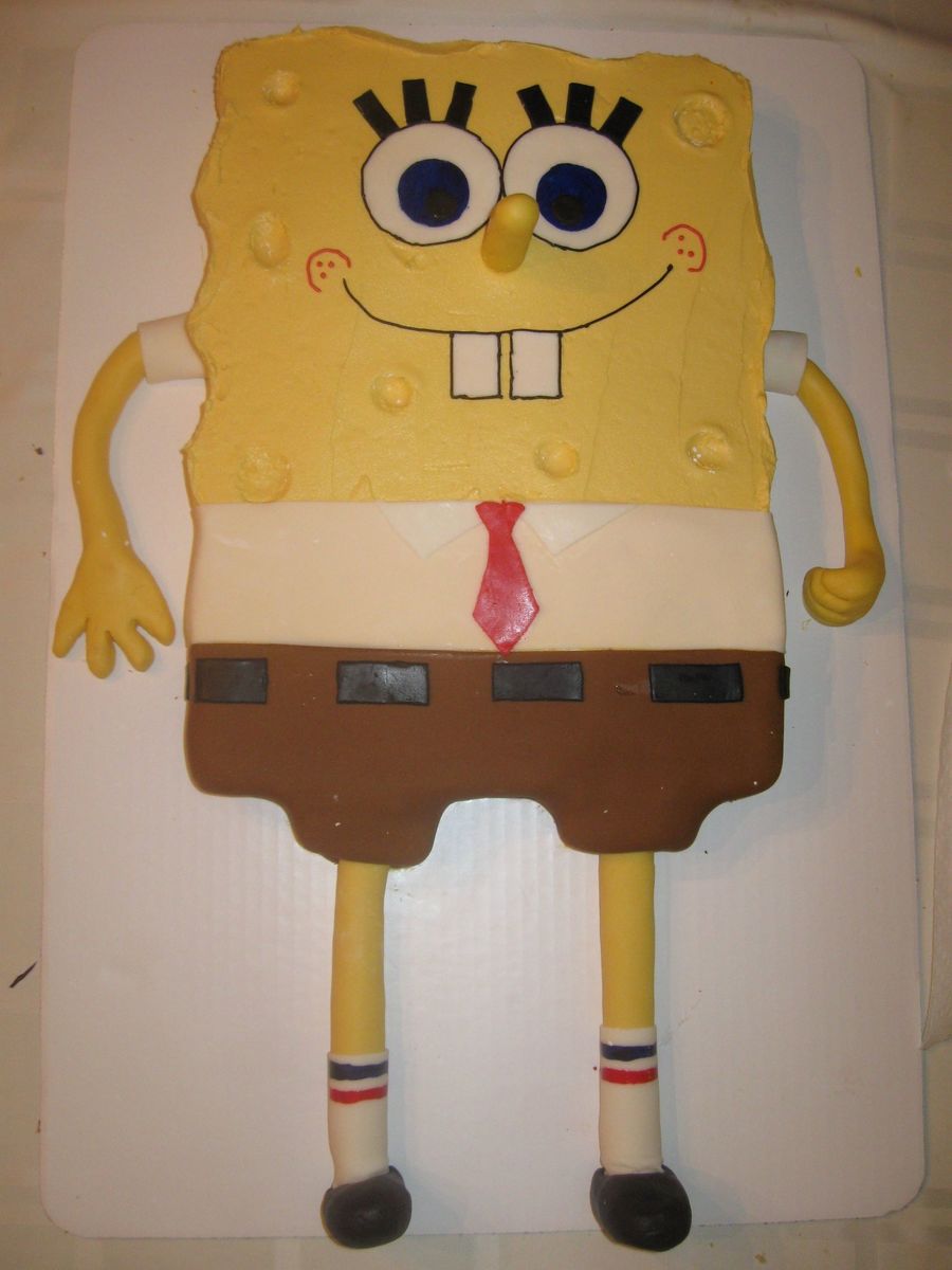 My first SpongeBob cake. His left hand is funny b/c I later added a sign for the birthday boy. I am pretty new at decorating and still have a long way to go, but SpongeBob was a lot of fun to make! TFL
