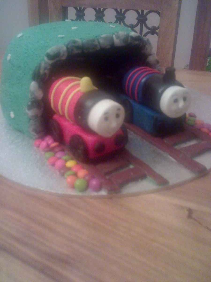 The hill/tunnel was main part of cake thomas and james are both made from sugar paste my nephew wouldnt let anyone have cake as would have to cut into it, lol