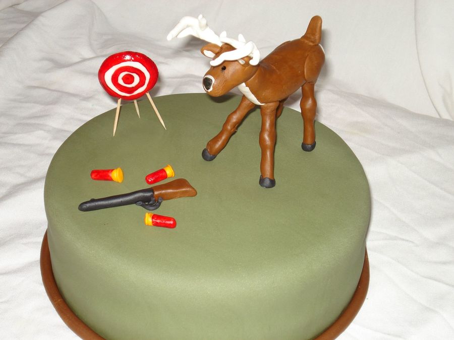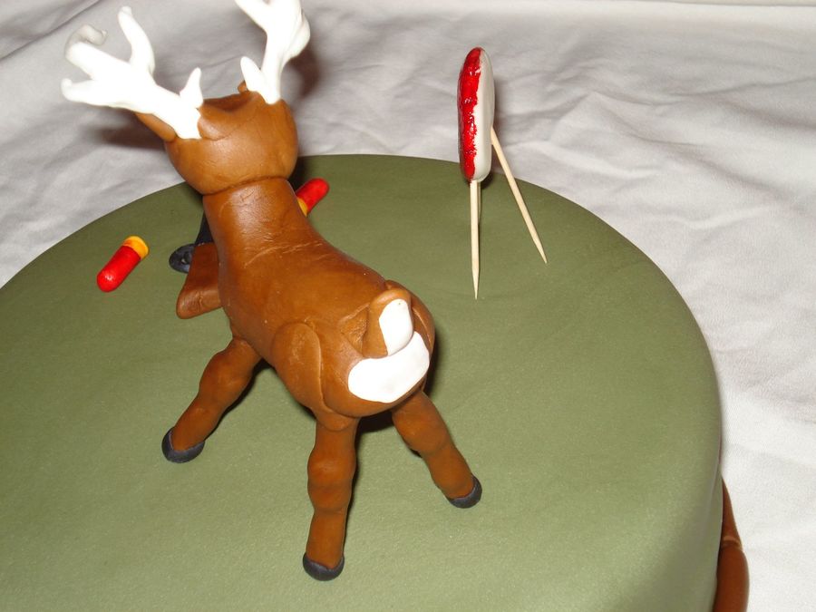 Hunting cake done for friends step son. Hand molded deer and accessories.