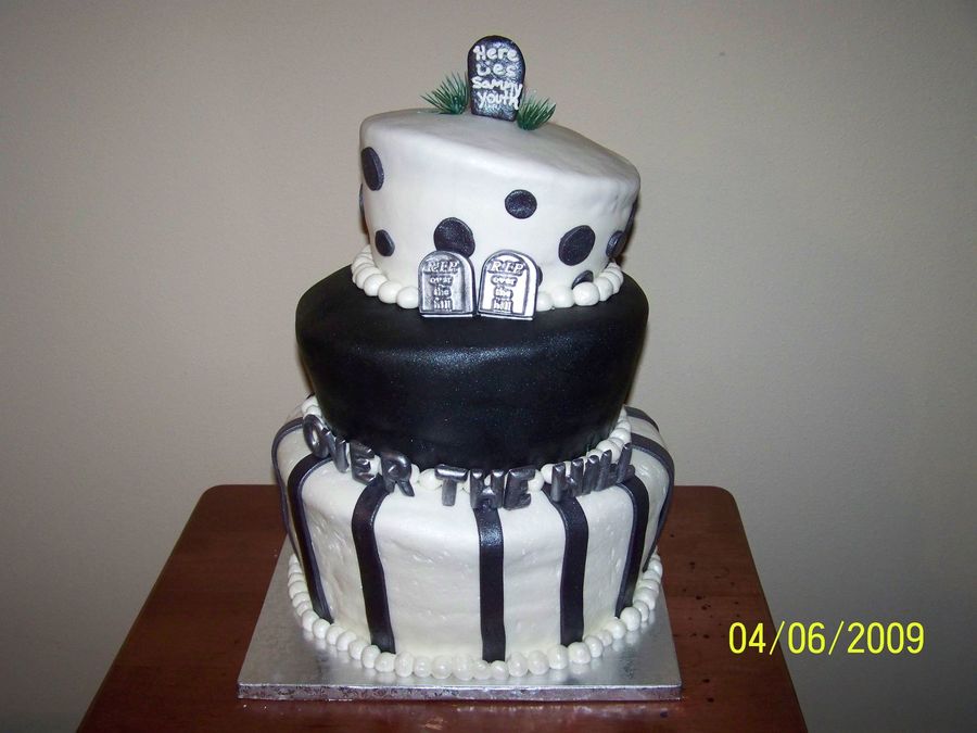 My 1st Topsy-turvy.Covered in black & white MMF with chocolate accents. More work than I thought it would be.Thanks for the tutorial!!!
