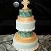 This was my entry to "Let Them Eat Cake" bridal show/competition. It is made of dummy cakes except the top tier is real cake. My only regret is that I didn't leave myself enough time to really take time on this cake and my piping is sloppy and unprofessional. I did end up liking my design though...its just when you look close you can see how sloppy it was.