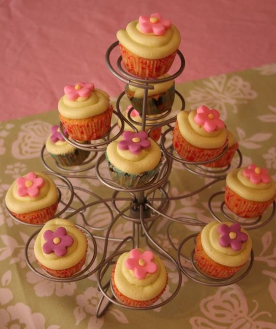 Really easy cupcakes that I made to go with my daughter's ladybird cake. Buttercream with fondant flowers.