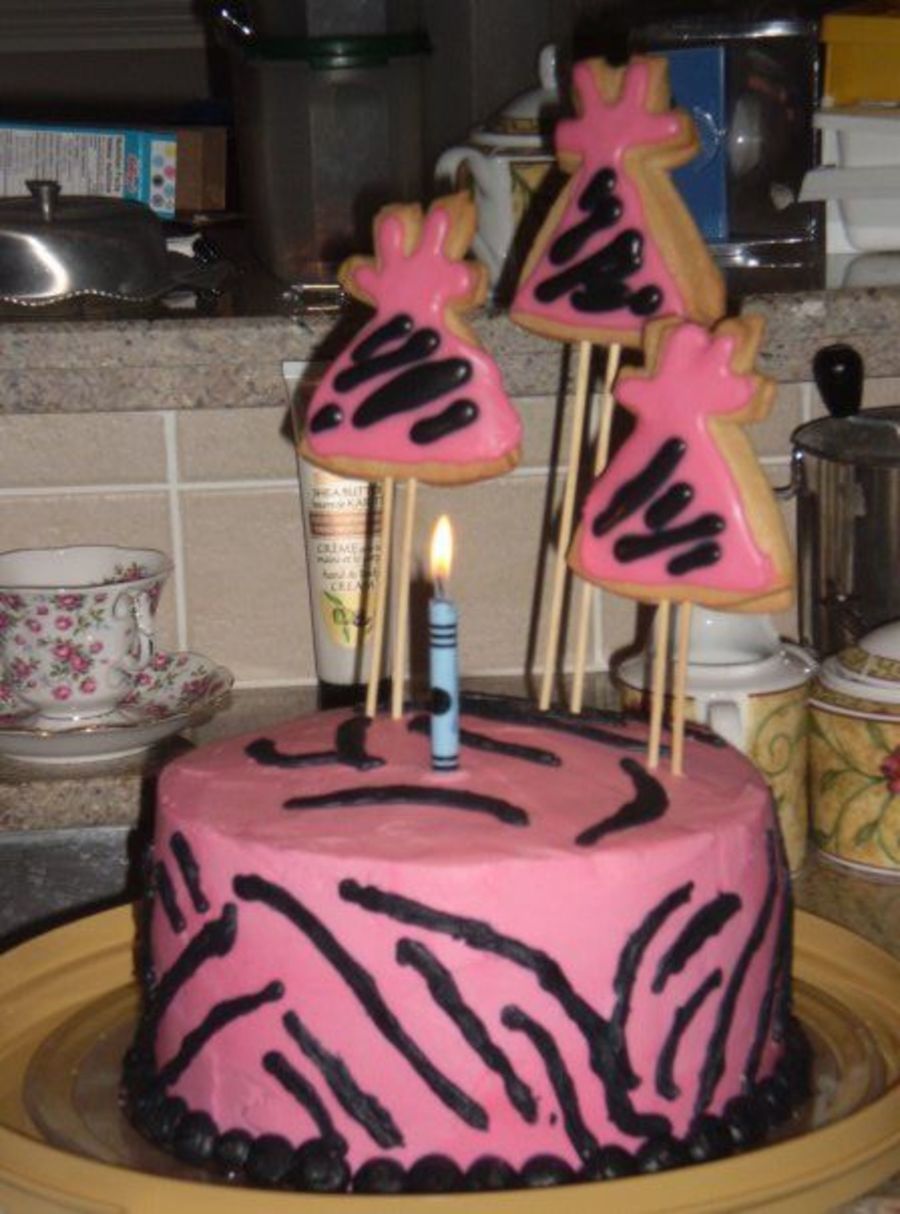 This is a yellow cake with buttercream icing. I used sugar cookies to create the birthday hats.