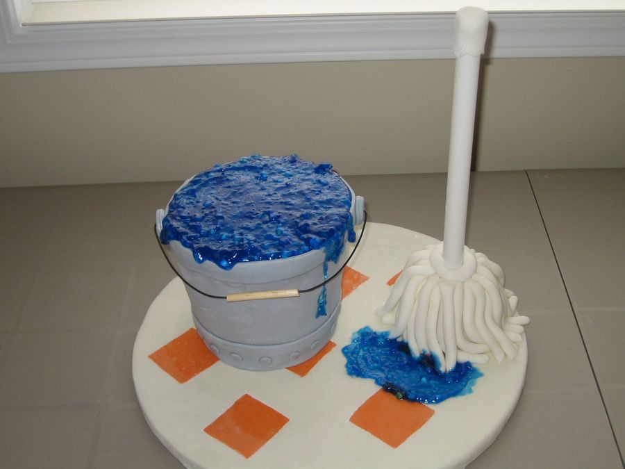 Bucket cake with mop made for a Norwex party I was hosting. All decorated with fondant except for mop and bucket handle