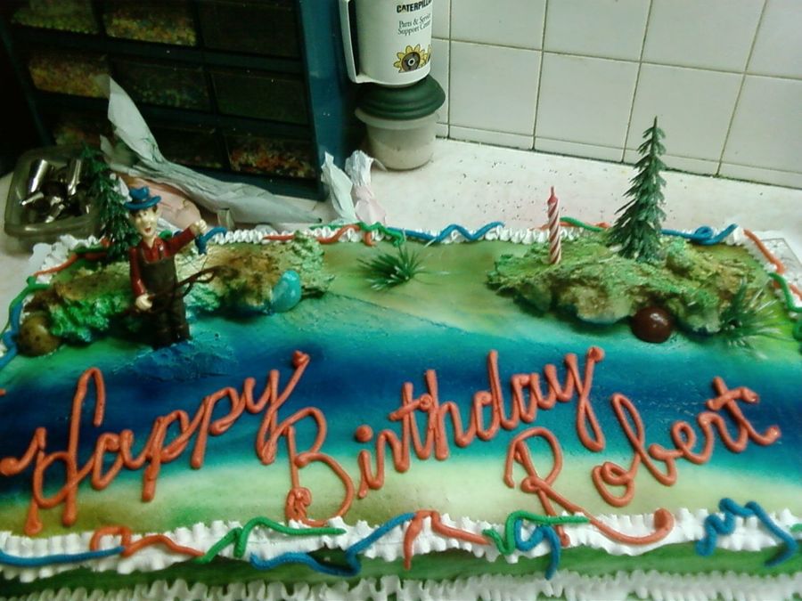 This was my first attempt at a cake that I mounded icing and sprayed a scene myself. Ohhh that air gun is fun!!!!!