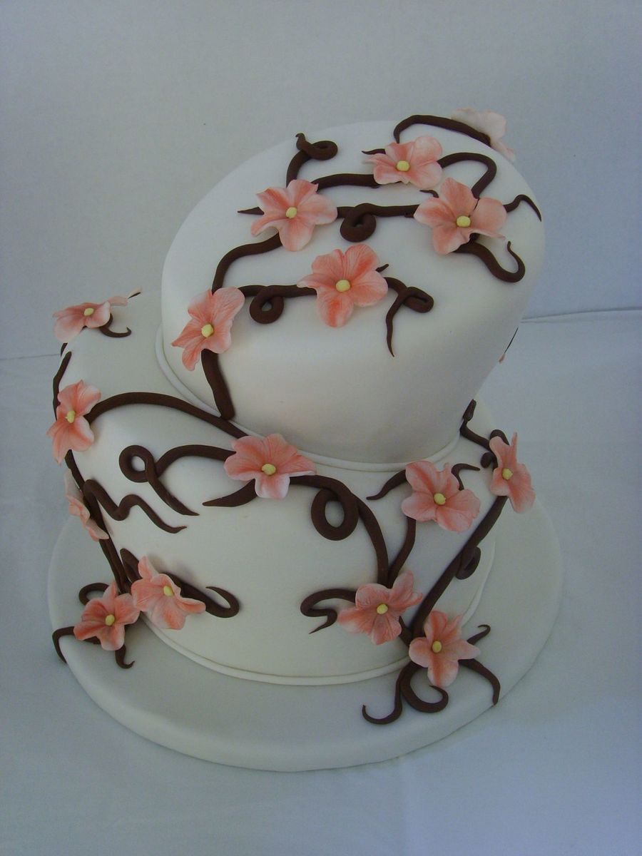 I'm very proud of this cake. It was my 1st topsy turvy cake. I made it for my own birthday party :) its yellow wasc filled with dulce de leche and strawberry filling. the branches are chocolate clay and the flowers are fondant.