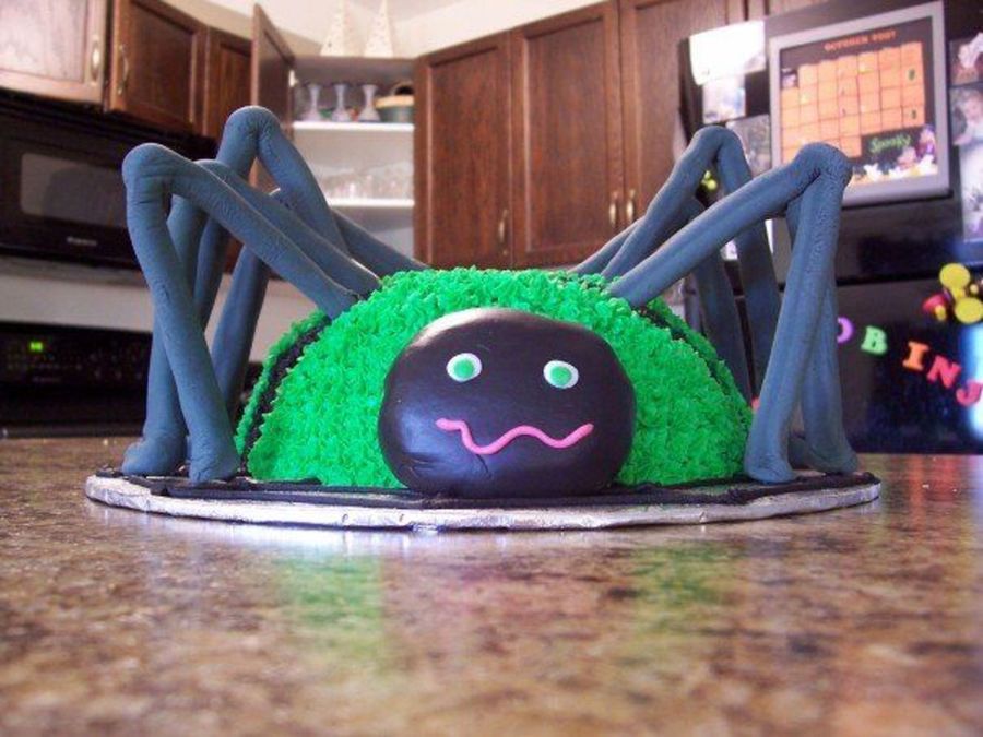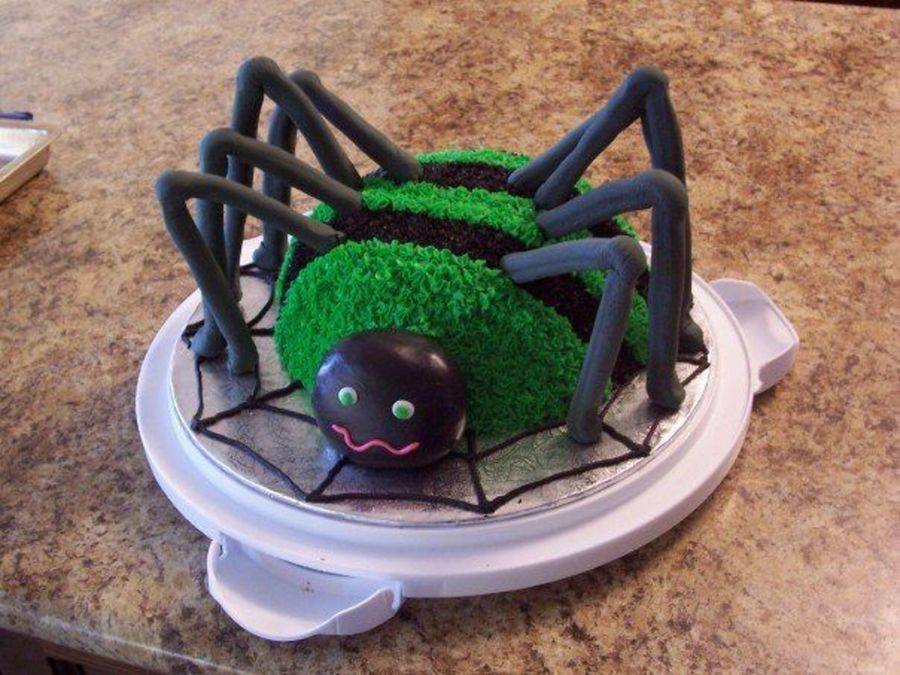 made this one for halloween. used soccer ball for body, used gumpaste for legs(which i made the day before so they would harden), and the head is out of fondant. buttercream icing is used for the restof the icing.