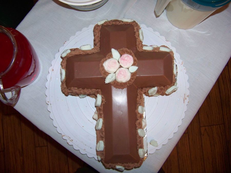 this is our easter cross, the flowers and leaves are cream cheese mints, the cross is a brownie with a candy melt top and chocolate buttercream. My son loves to make candy melt treats and both kids had a great time cutting out the mints.
