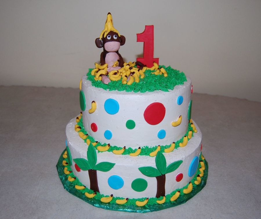 Inspired by all of the cool monkey cakes. I knew one day I would get to make one. SMBC. fondant accents 50/50 fondant gumpaste monkey and 1.