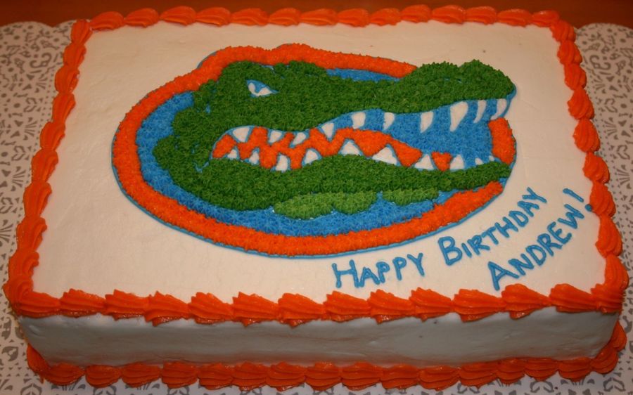 This Gators logo was created using the piping gel transfer pattern and piping buttercream stars on top of it.