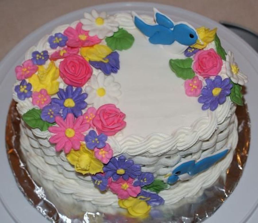 This is my finale cake from course 2! I love the basketweave technique and I love being able to make flowers in advance and then quickly whip together a pretty cake when necessary. This cake was done in January of this year, and I am about to start course 3 next week. (have been waiting for Michaels to offer it) I can't wait to learn more!