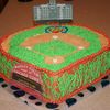 This cake was done as a representation of Wrigley Field in Chicago for a rabid Cubs fan. I used an 8 in square and a 10 in round each cut in half and layered half on half and then joined together to form the baseball field shape. Used pulverized vanilla wafers for the sand of the infield and warning track. Cubs logo is a piping gel transfer. Used my brick template to make the bricks of the wall and sotas to represent the ivy that famously covers the outfield wall of Wrigley. Bases were cut from a white Airhead candy. TFL.