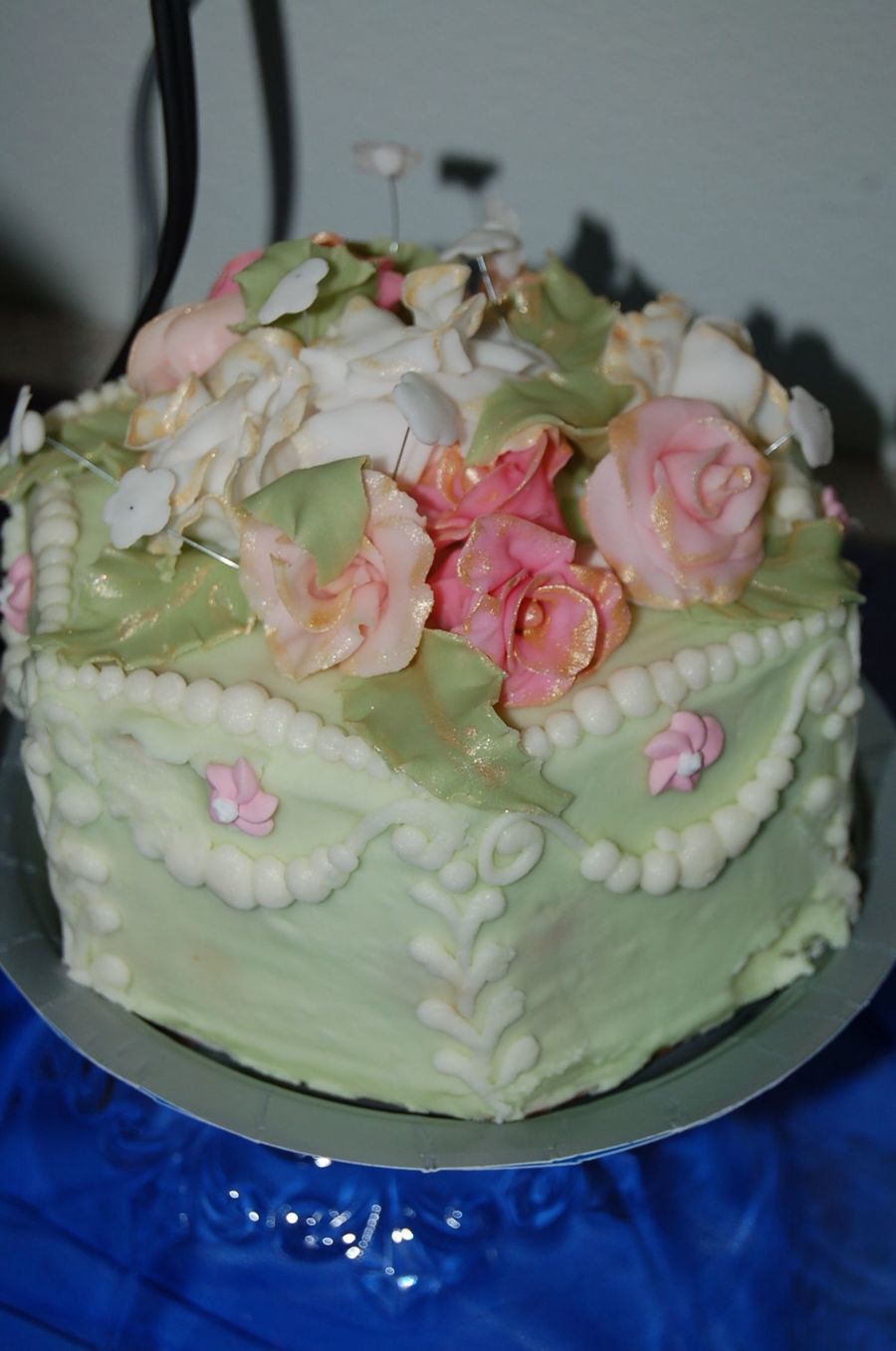 Carrot Cake with cream cheese frosting, I found it difficult to smooth the cream cheese icing but it sure did taste good. this is just a picture of the top after it was removed from the rest of the cake. It was 3 tiers