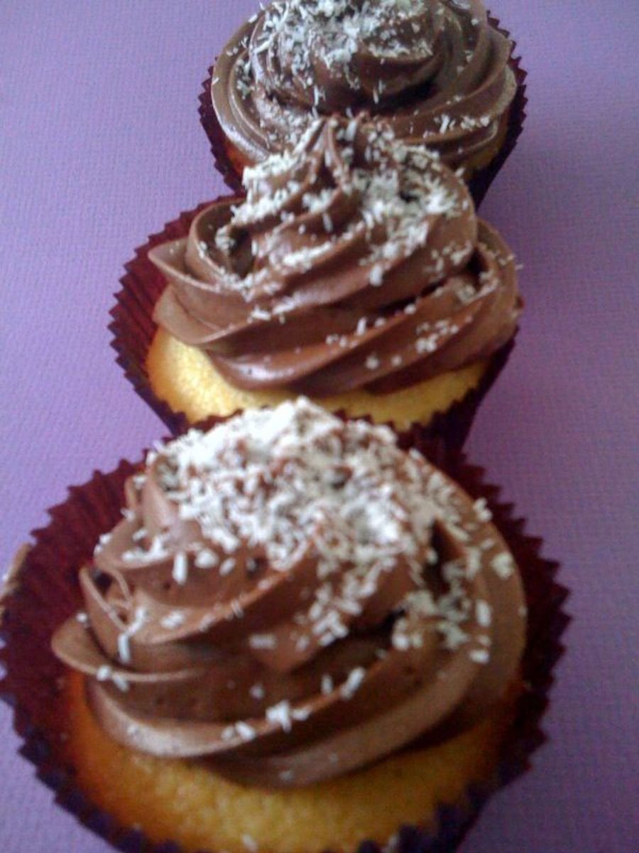Lamington cupcakes - vanilla cupcakes, whipped ganache icing and coconut.
