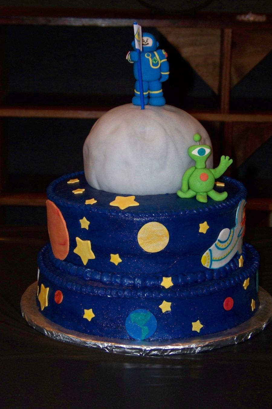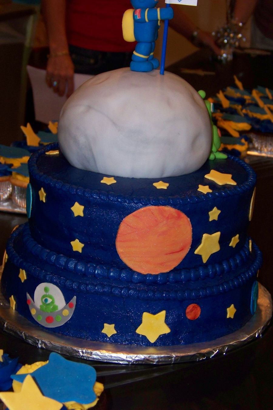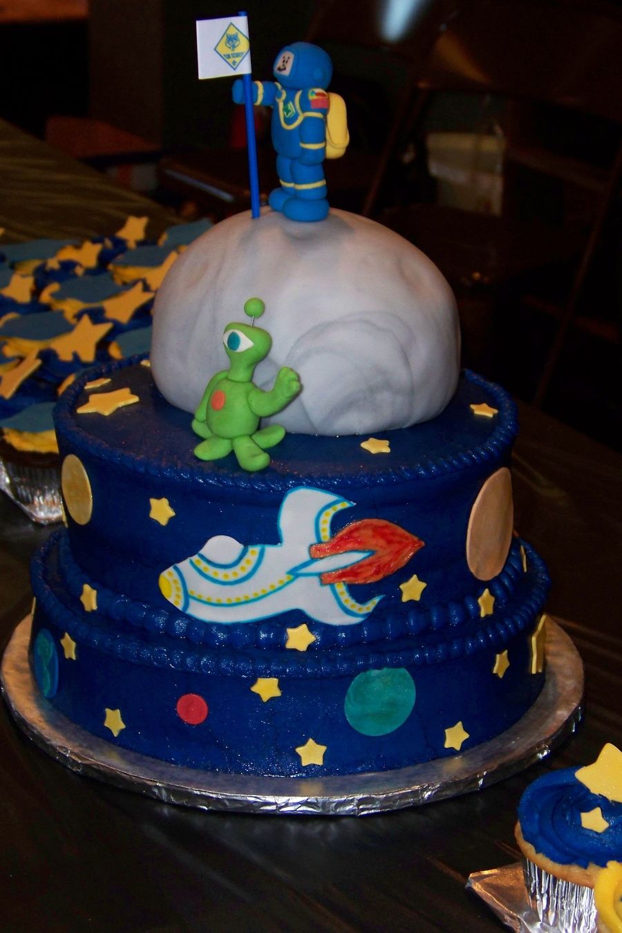this was for my son's cub scout blue and gold ceremony. the theme was space the final frontier. buttercream with fondant/gumpaste decorations. i hate blue icing!