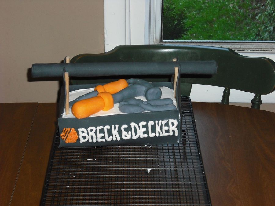 My son loves his black n decker tool box... his name is Breck. Made cake out of loaf pan and covered in fondant. Tools are also fondant. Didn't turn out as well as I had hoped, will definitely design is differently next time.