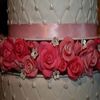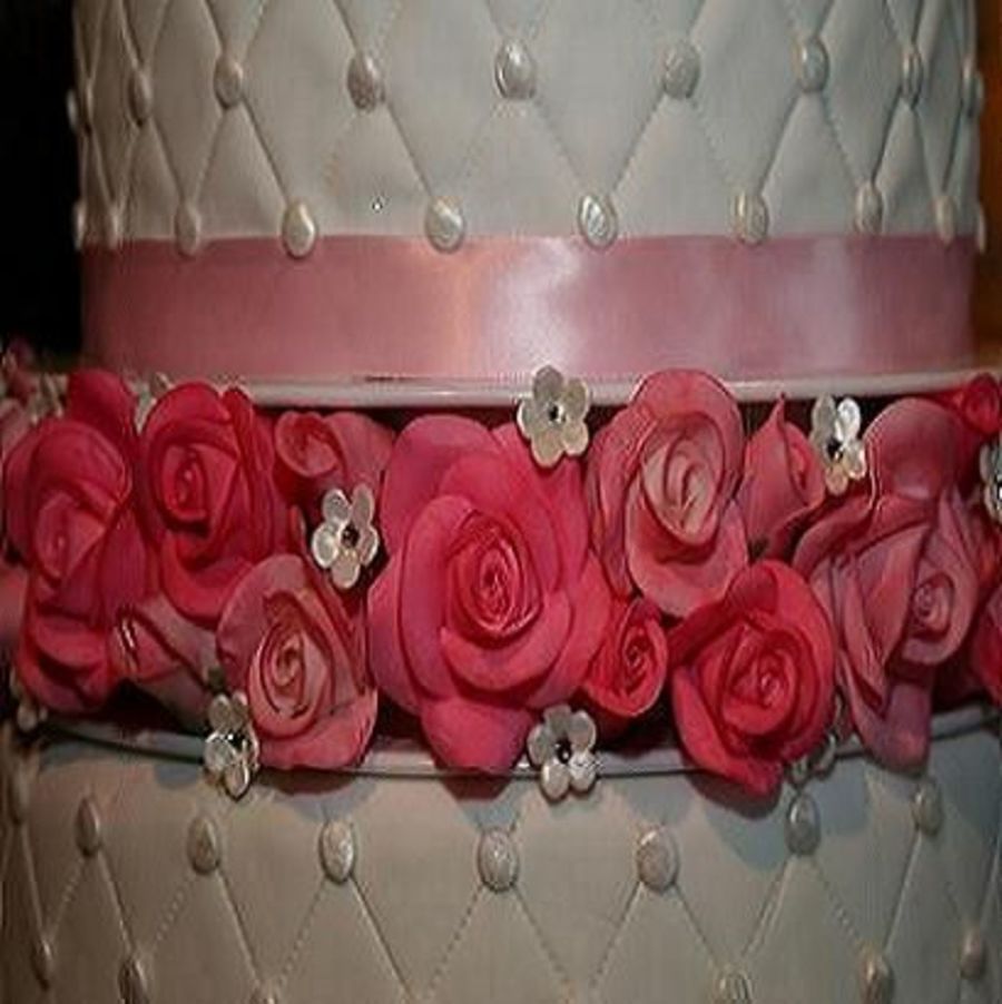 Cake is 12, 10, 8 and 6 covered in Satin ice. I made all the roses out of Nick Lodge gumpaste.