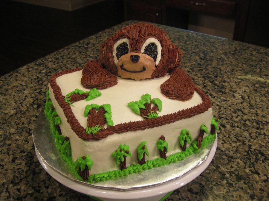Test cake to see if I could do this cake. Orginial cake was done by dmhart and was so cute. Instead of carving the monkey head I used the head from the Wilton bear pan and I didn't have a grass tip so I used a #16 star tip.. Overall I'm very happy with the look but for the final cake I'll use the grass tip . Thanks dmhart!