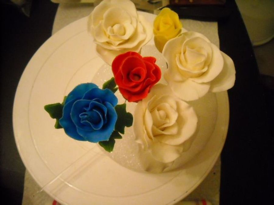 The white roses were the first attempt. The red and yellow were the second. I did the blue rose last nite, and I think I finally got it! See how well the center was covered? Look at the white ones those centers are wide open. It's great when folks can get it on the first shot but some of us have to practice.