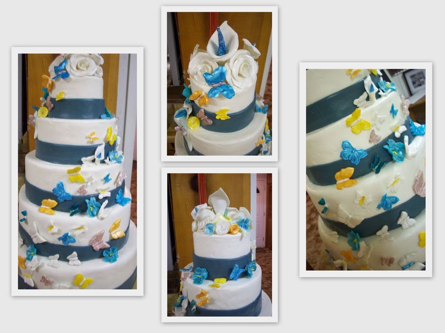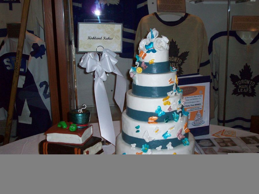 MMF and Gumpaste, First tier cake. Cake Is a Dummy Covered in MMF and Gumpaste Butterflies and flowers. Done for a bridal show