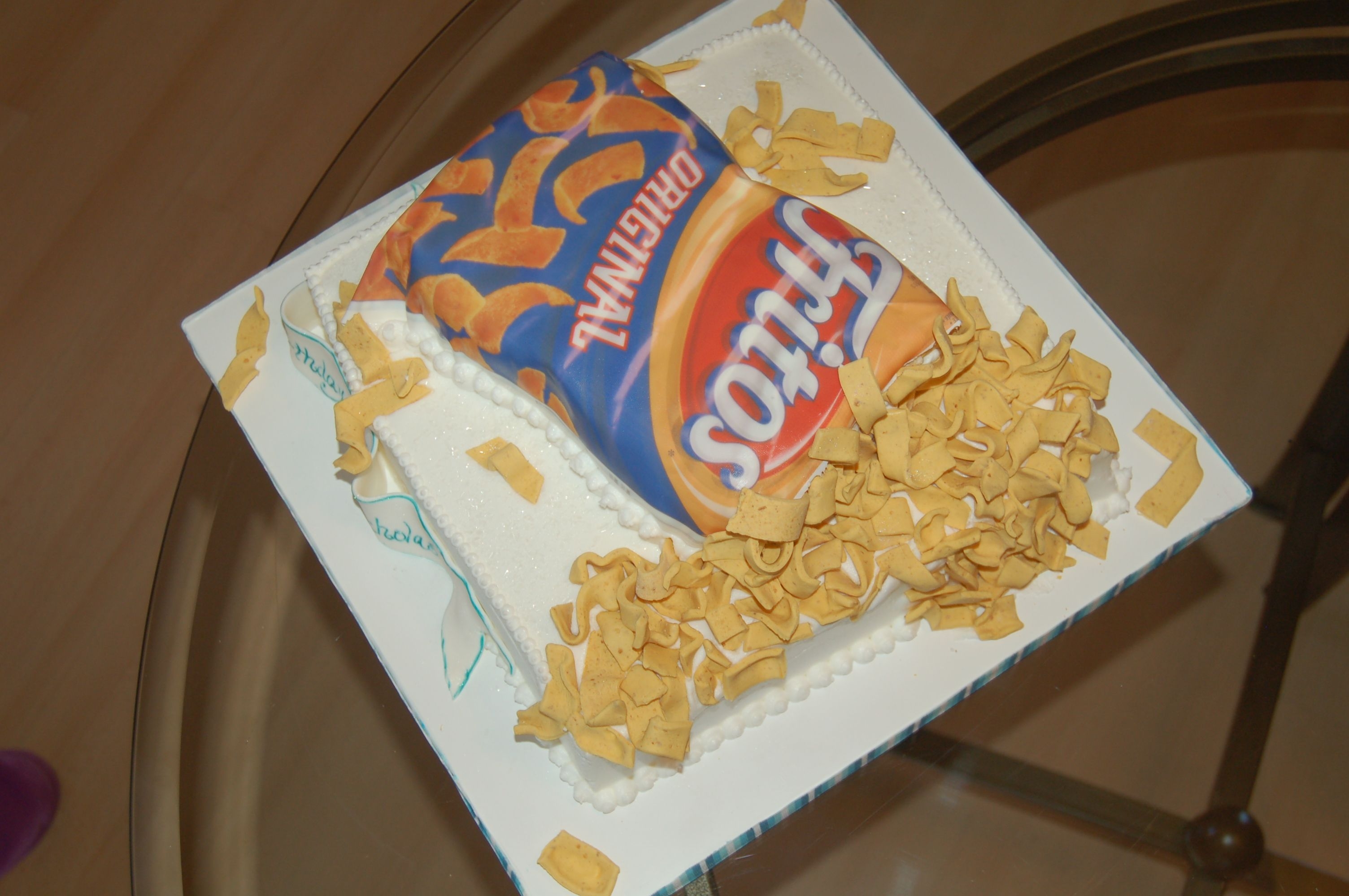 Made for mom who is a lover of fritos. Fritos made with colored fondant and crushed up graham cracker. Thanks for letting me share.