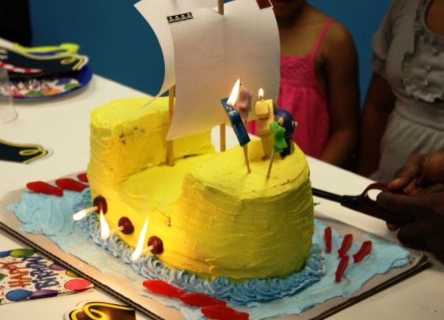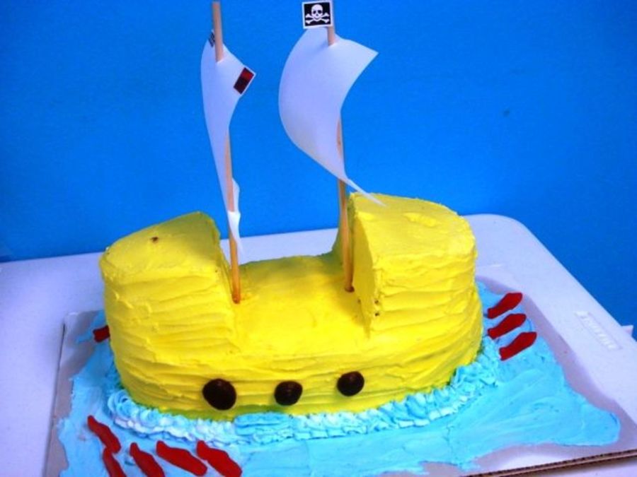 This pirate ship was originally made with brown (chocolate) icing until my 3 year old nephew decided that he wanted a red pirate ship. We finally settled on yellow so that I wouldn't have to spend ALL day trying to get the right color red. And here it is! ARRRR...