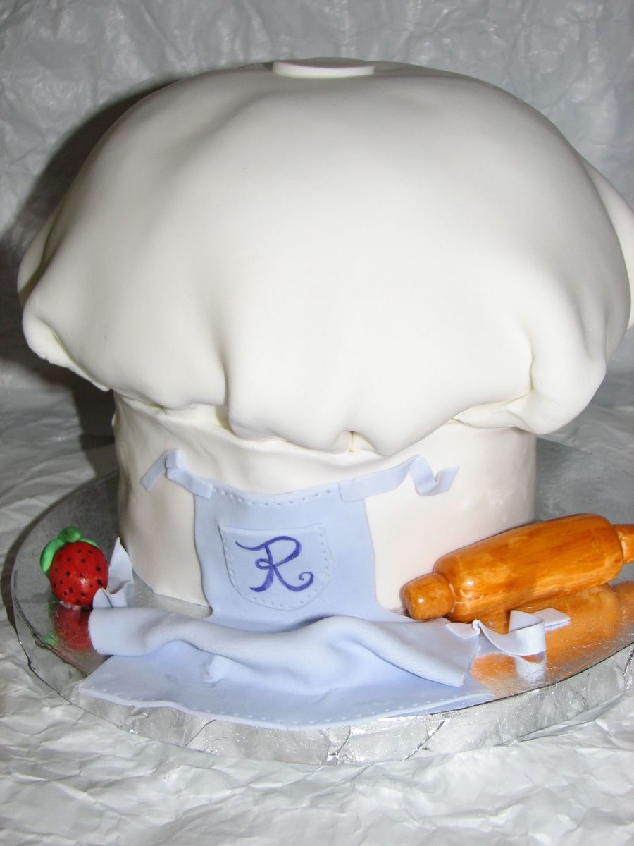 This was made as a thank you for a teacher who loves to cook and bake. 2 6" rounds, and 1/2 of an 8" ball pan for the top of the hat- carved slightly.