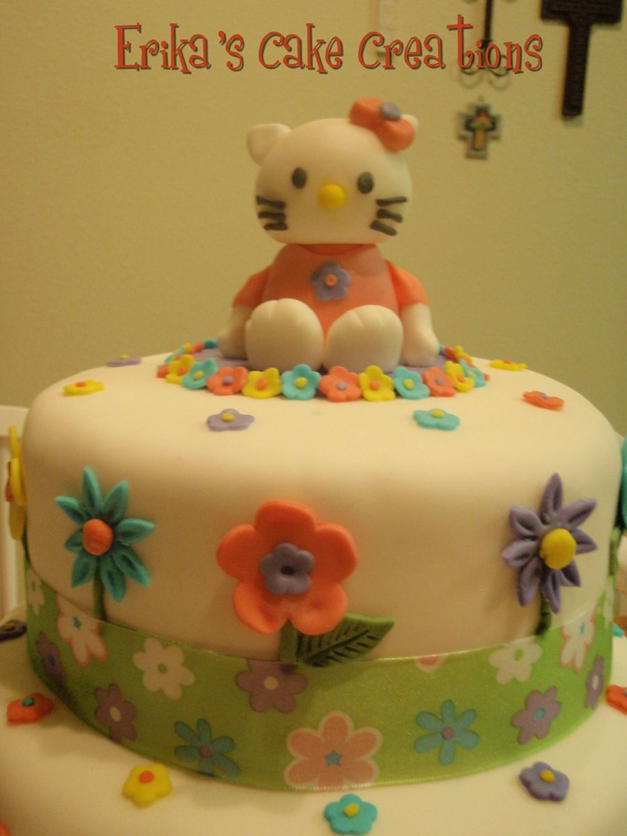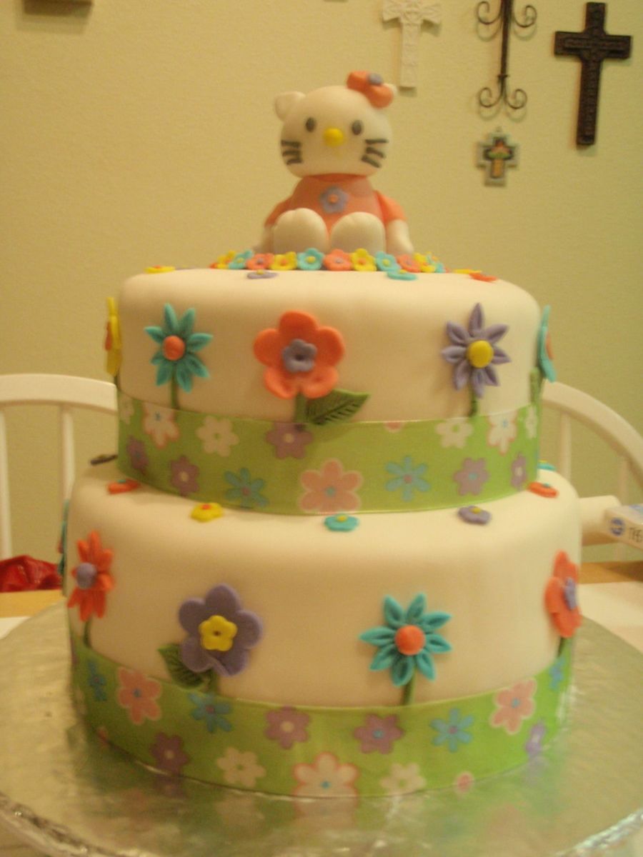 I made this cake for a little girls bday party. She loves Hello Kitty! I made the Hello Kitty out of fondant. I was nervous cause I had never done it. I just winged it....