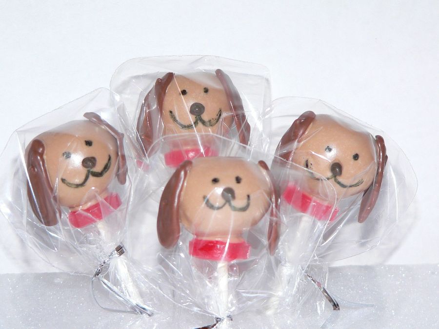 These are pops to match the puppy with the giant cupcake cake for favors. Thanks to bakerella for her continual inspiration!! :D