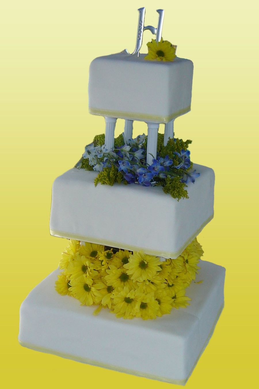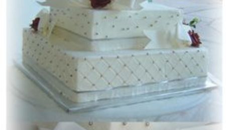 fondant covered with real flowers and ribbon