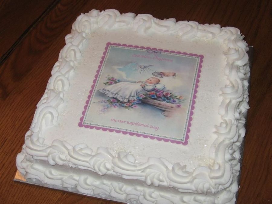 Made this for my great niece who is being baptized tomorrow. Edible image, border using tip 1M. Edible glitter added for sparkle! TFL