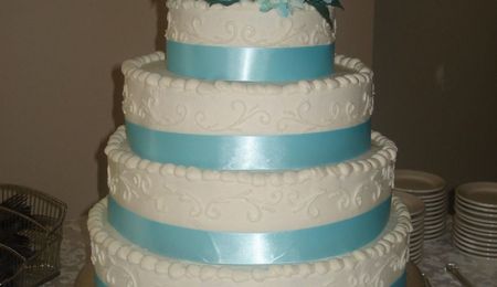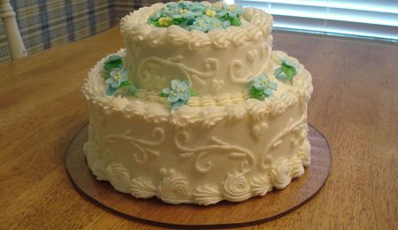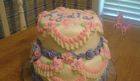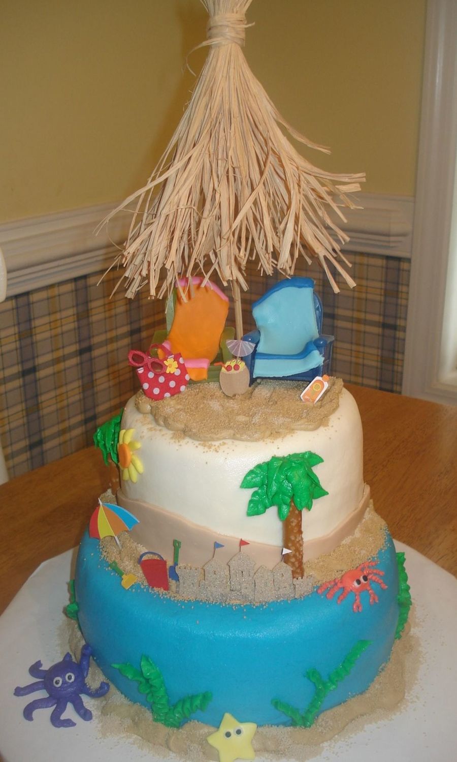 Buttercream with fondant accents. The beach chairs on top have a fondant towel on them, and some of the other accents are scrapbooking items that were beach themed.