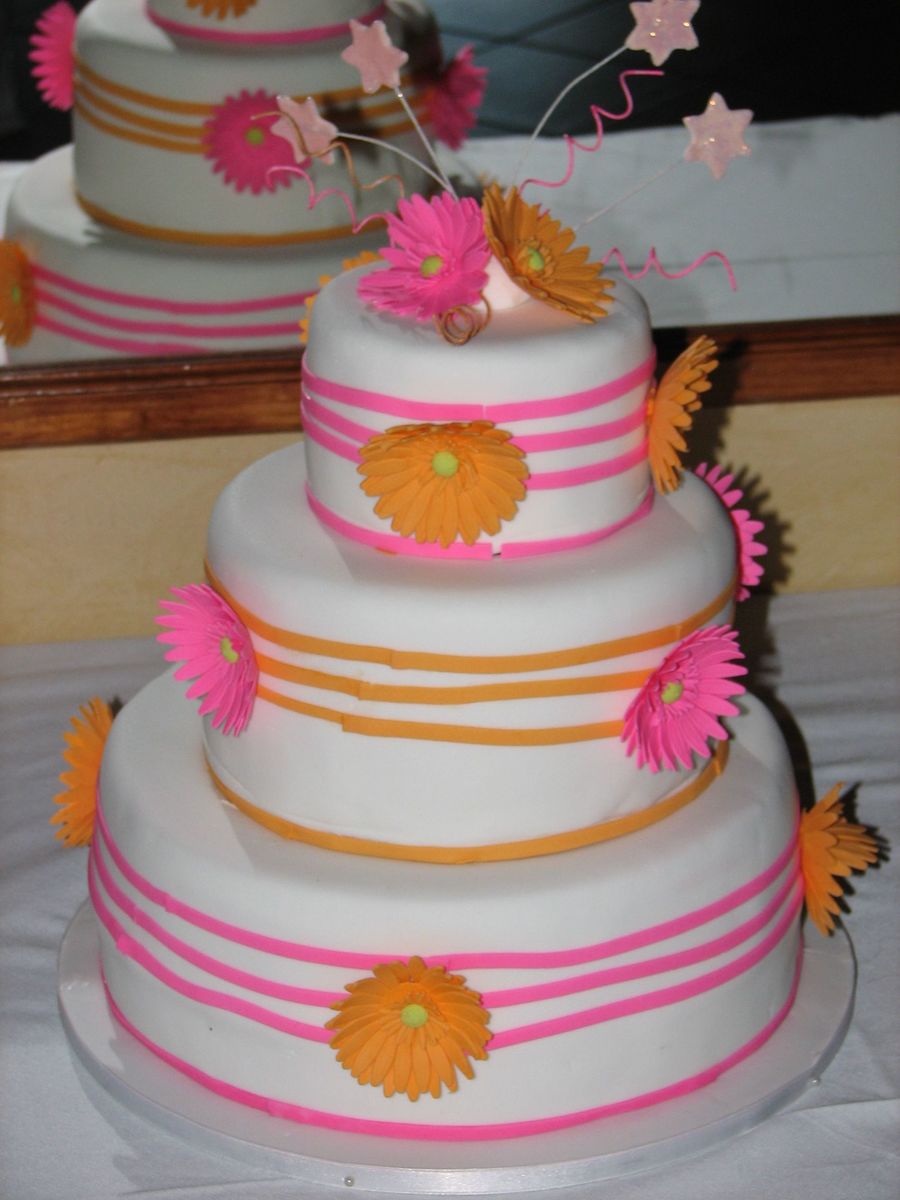 Chocolate sponge cake covered in fondant with gumpaste daisies