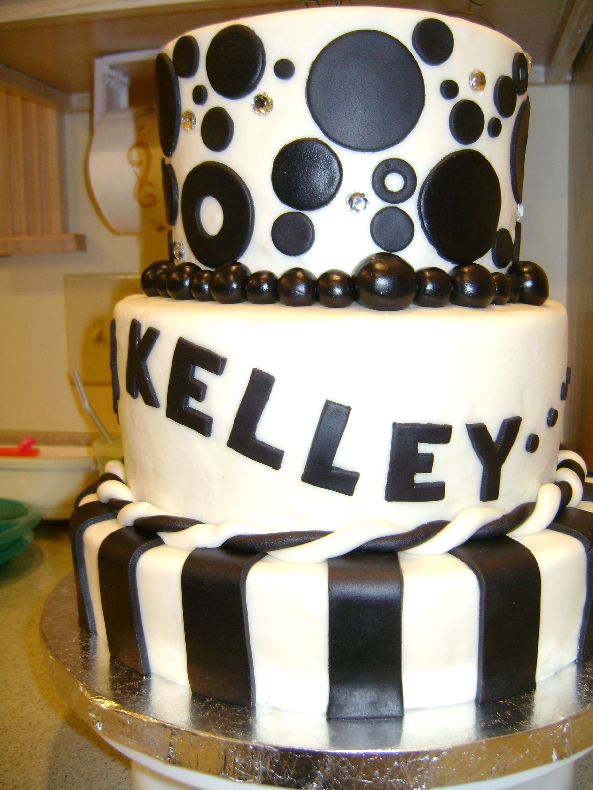 My first tiered cake and second time working with fondant. I was happy with how it turned out. 10" 8" and 6". All covered with MM fondant. Lettering cut by hand - no stencils. Never could have done this cake without researching this website! Thanks for looking