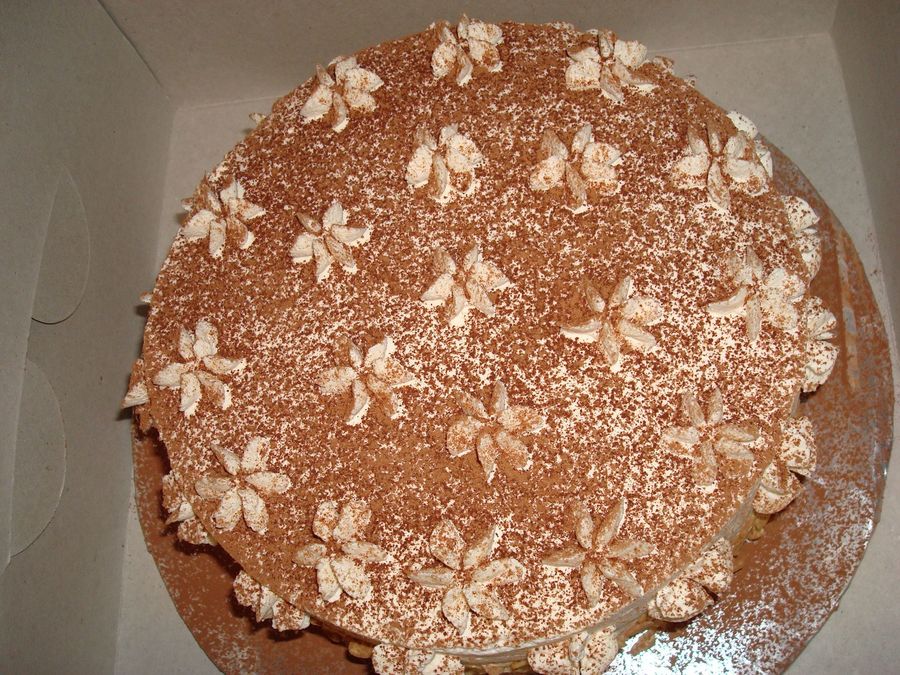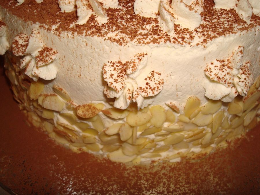 I am posting this, not because it is beautiful, but because I baked it from scratch, and that is something that I don't normally do. This is a very labor intensive cake, with three different fillings, and an egg leavened Italian sponge cake. I kept screwing up the cake, and the whole process, from start to finish, took me almost 7 hours! Never again.