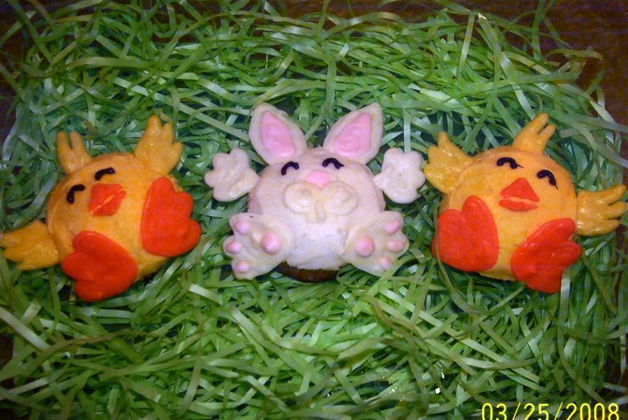 These are from a Wilton Cupcake book. All pieces of the chicks and bunny are piped candy melts.