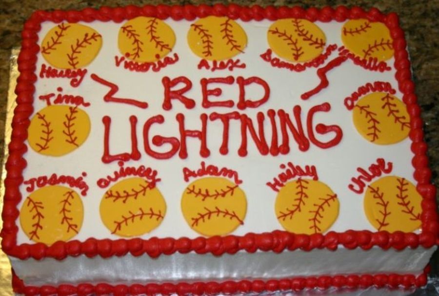 I threw this cake together last minuet for my daughters softball team party. It's not great but everyone really liked. Buttercream with MMF softballs.