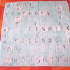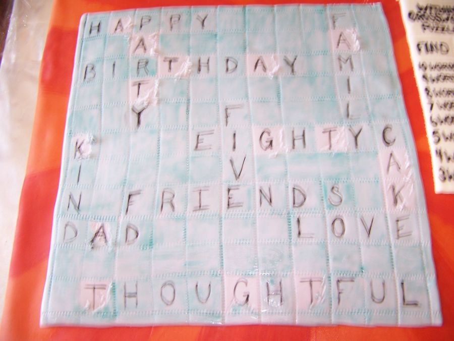 this was for an 85th birthday it was huge im still unsure how I rolled one piece of fondant that big it was on a board about 2feet by 3feet but it was kinda fun after putting it all together i got to scratch off some areas and make it look messy