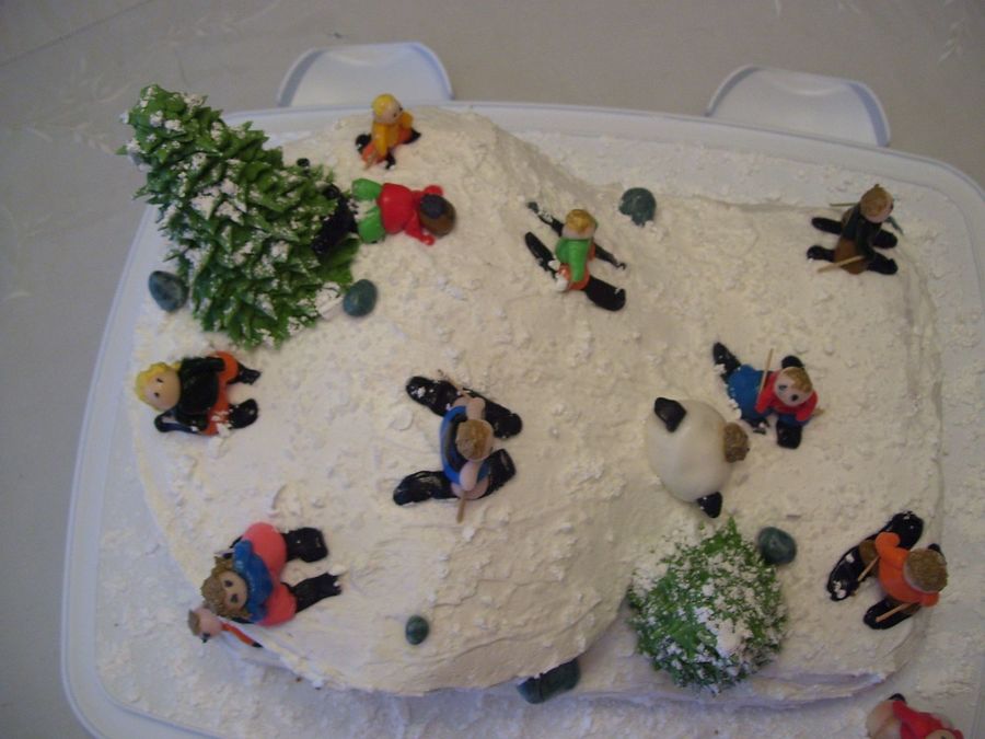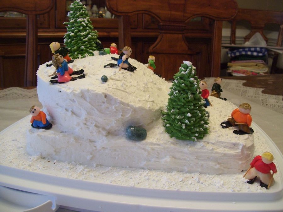 Here is a cake i did for my little brothers birthday. The figures are fondant. I dusted the cake with powdered sugar. It was very fun to make!