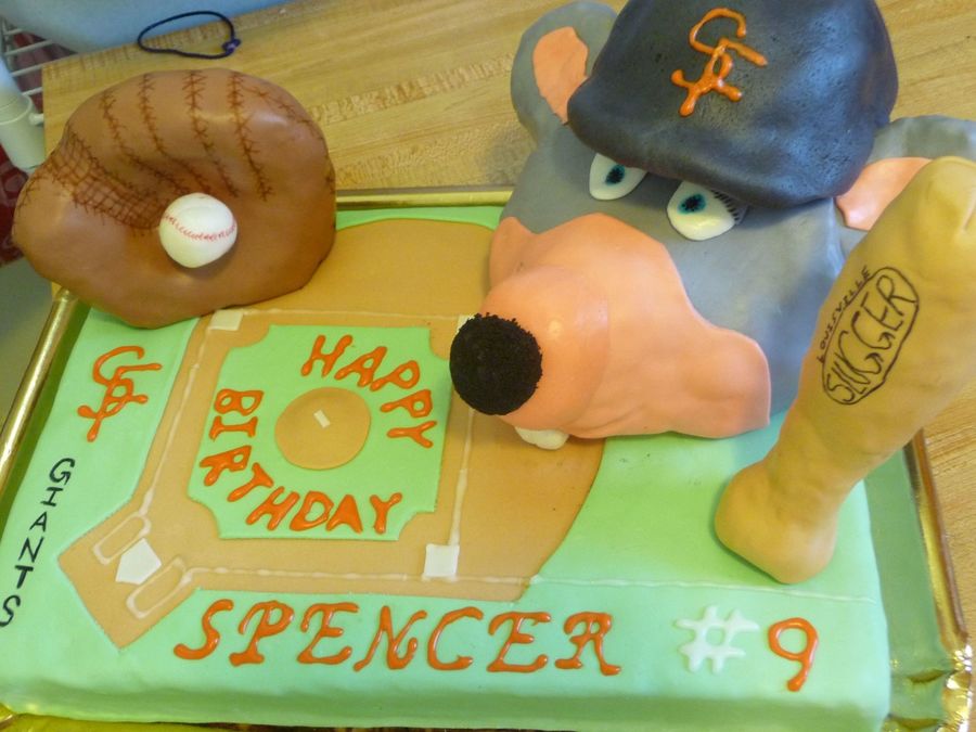 Chuck E Cheese and Theme of SF Giants BaseBall.
