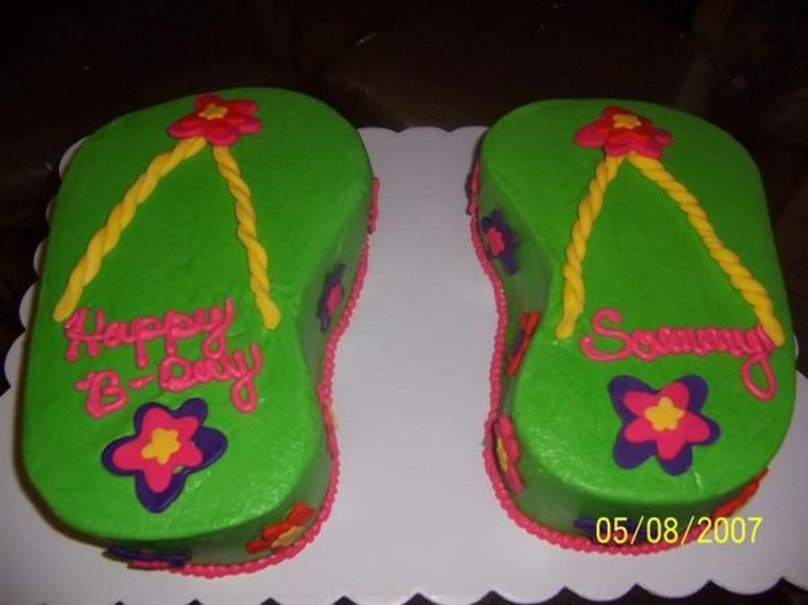 My first cake. Made this one for my niece. The flip-flops where awfully big, but the more cake the better right?