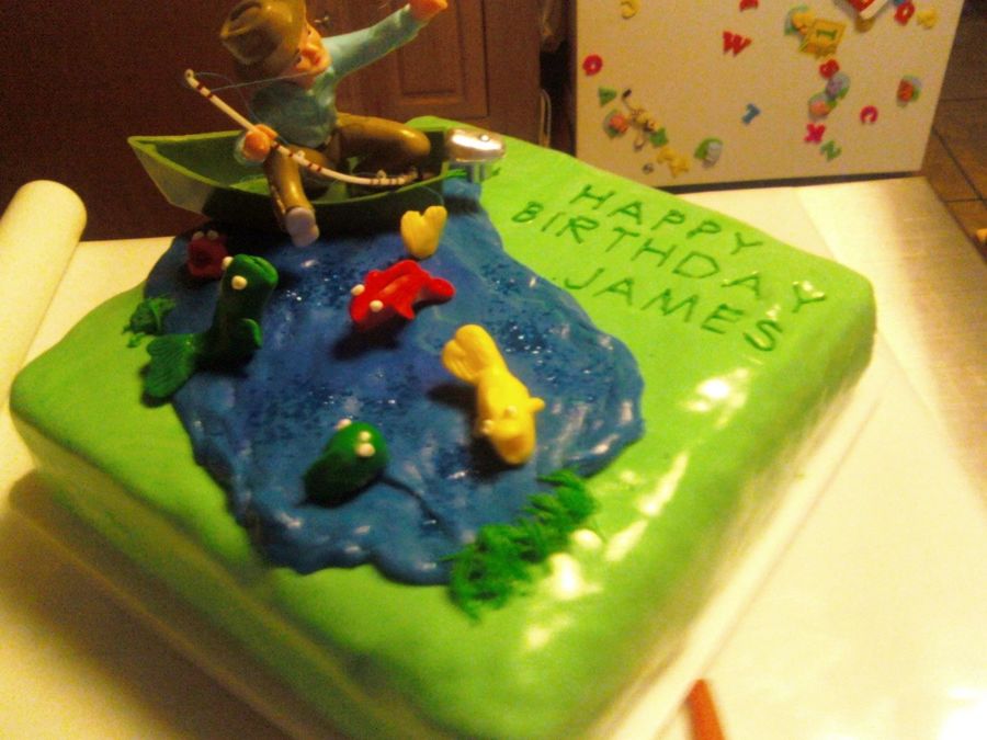 This was a last minute order for a birthday cake, all they said was fishing. So here's what I ended up with