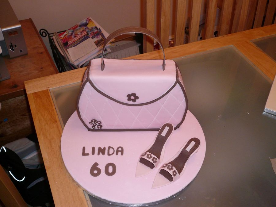 First attempt at handbag cake and flowerpaste shoes. Not bad but the handle on the bag was a nightmare.Chocolate cake with chocolate BC .