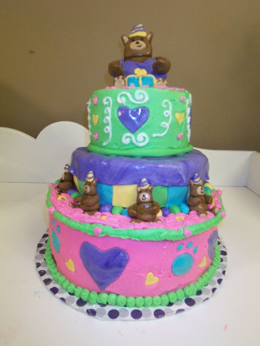 I was asked to do this for a Build-A-Bear party. The colors were more like a baby shower, but the birthday girl loved it anyway. I will definitely make the colors darker if ever asked to do this one again though.